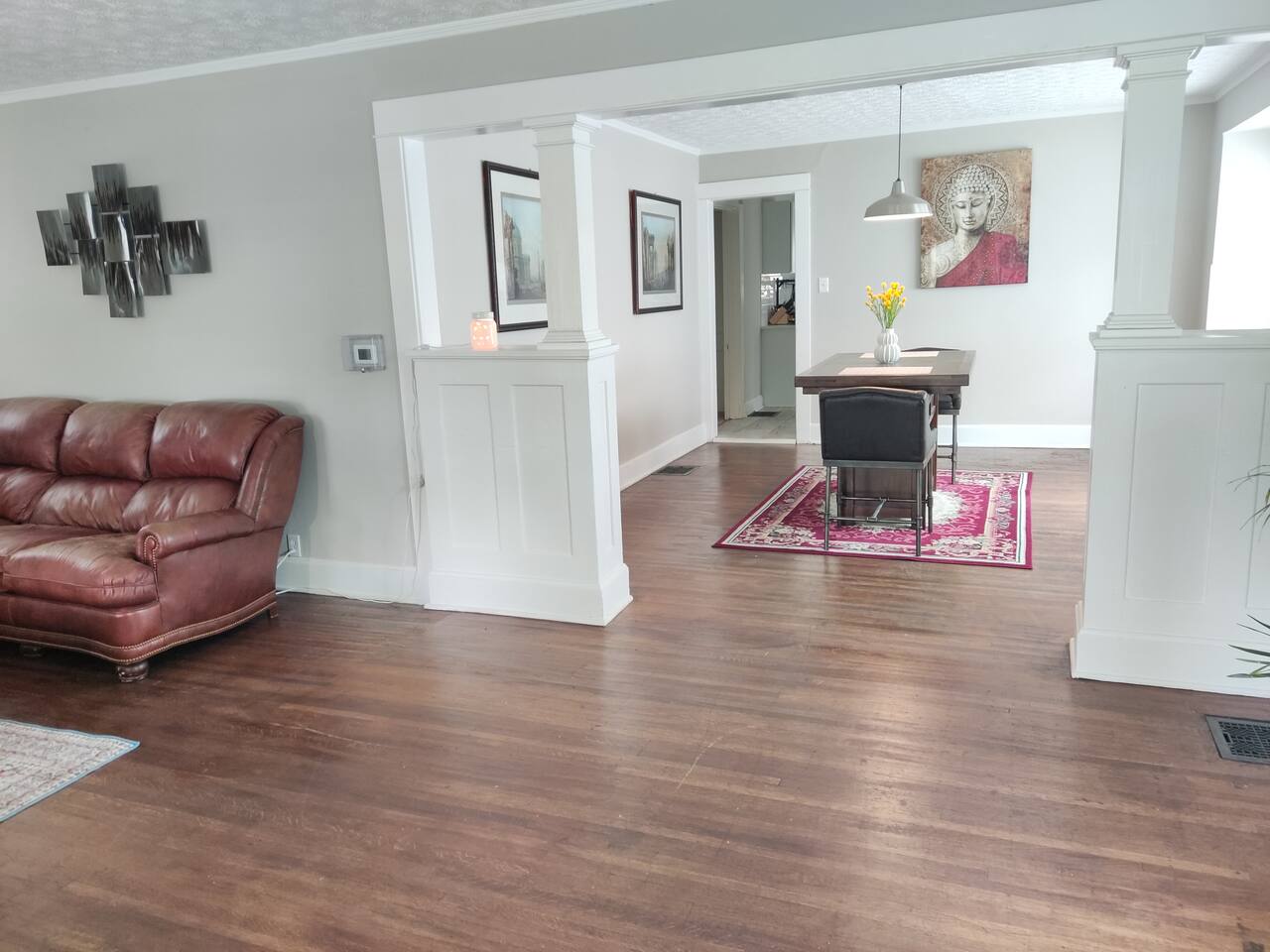 Welcome to Your Peaceful Retreat in Indianapolis! Nestled in a newly updated shared 5-bedroom home, this private room (Room #5) offers a serene and comfortable environment, perfect for short-term stays. Whether you're a professional or traveler seeking a quiet, well-maintained space close to downtown, this home provides the ideal retreat. Enjoy a peaceful atmosphere with respectful, long-term tenants who value privacy and tranquility. Please note that some areas of the room have low ceilings due to the design. Be mindful of your head when walking around, especially near the sides of the room. Inside, You’ll Find: 🛏 Private Bedroom: Rest easy on a plush queen-sized bed with crisp linens for a great night’s sleep. A 32-inch Smart TV ensures you can unwind with your favorite shows or movies. 📦 Ample Storage Space: A spacious closet and dresser allow you to unpack and settle in comfortably. Shared Amenities for Your Comfort: 🍽 Fully Equipped Kitchen: Prepare meals with ease and enjoy access to a convenient coffee station. 🛋 Cozy Common Areas: Relax and unwind in thoughtfully furnished shared spaces. 📶 High-Speed Wi-Fi: Stay connected with fast, reliable internet throughout the home. 🧺 Laundry Convenience: In-house washer and dryer available for $5 per load—perfect for longer stays. 🚗 Parking Options: Private parking behind the house (first-come, first-served) and ample street parking right in front. Prime Location – Easy Access to Key Destinations: 📍 Downtown Indianapolis – 4 miles 🏟 Lucas Oil Stadium – 4.8 miles 🏥 Riley Hospital for Children – 4.2 miles 🐘 Indianapolis Zoo – 5.6 miles 🎓 IU Indianapolis Riverwalk – 4.5 miles 🌆 Carmel, Indiana – 13 miles Why You’ll Love Staying Here: ✔️ Fresh Towels & Essentials – Thoughtful touches to make your stay comfortable. ✔️ Tranquil Atmosphere – Ideal for guests seeking a peaceful and quiet environment while still being close to the city’s best attractions. ✔️ Flexible Stays – Whether you’re here for a weekend getaway or an extended visit, we offer competitive nightly rates. Secure Your Stay Today! Our properties book quickly due to their quality, affordability, and peaceful atmosphere. Don’t miss out—reserve your stay now before rates increase. We look forward to hosting you and making your stay in Indianapolis a comfortable and memorable one!
