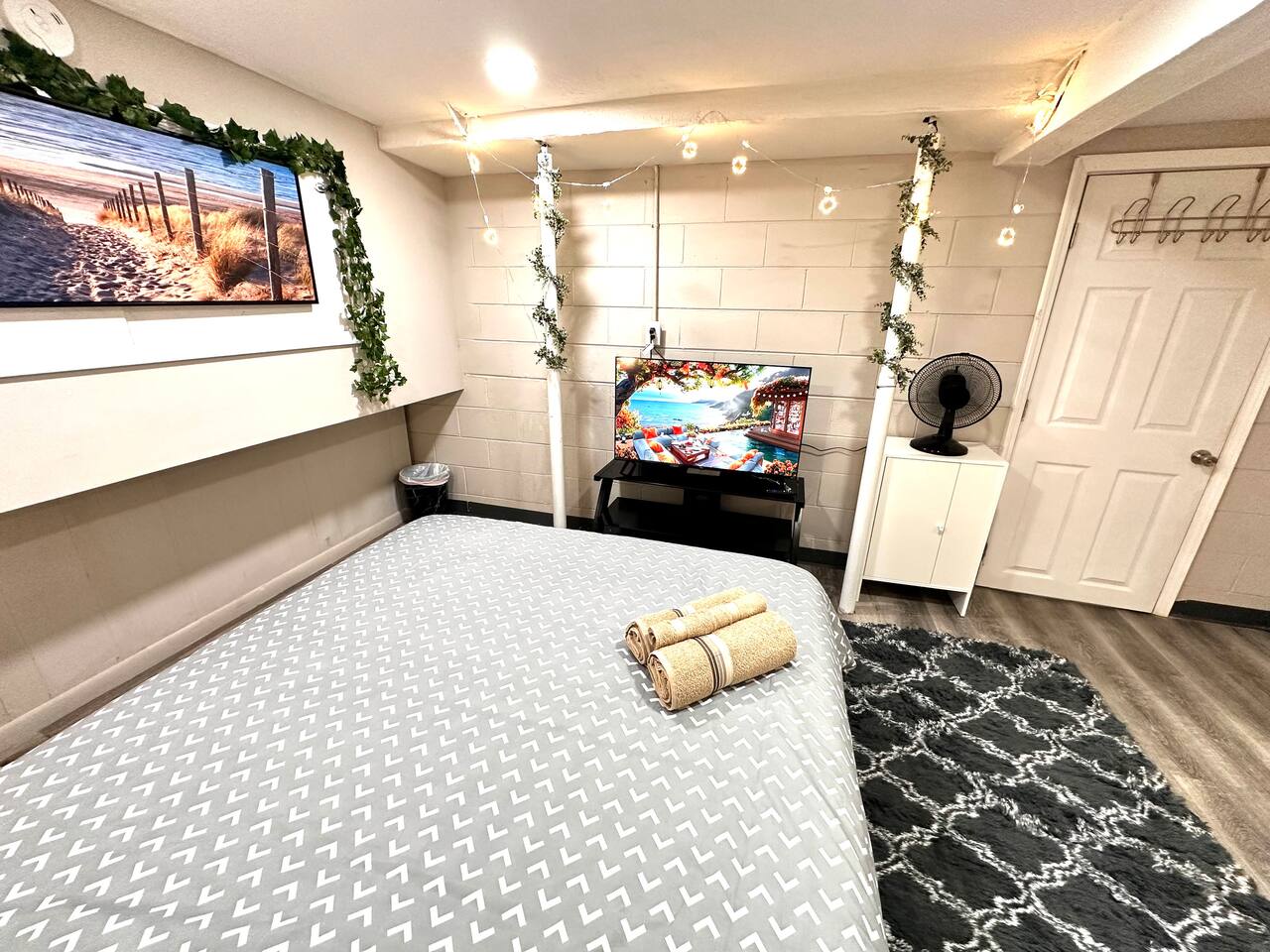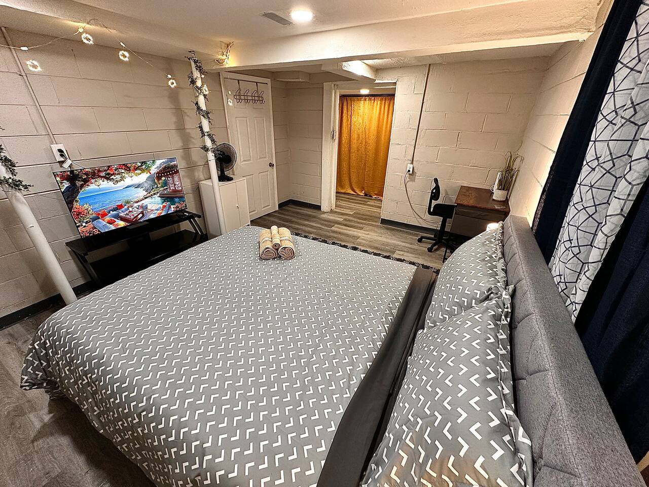 Discover Your Urban Retreat in Indianapolis Welcome to your Private Cozy Basement Studio Apartment, featuring perfect blend of comfort and convenience. Located approximately a mile from the vibrant Indianapolis Fairgrounds, surrounded by a myriad of restaurants, bars, and coffee shops, you'll enjoy the best of both worlds right at your doorstep. Prime Location: Nestled just under 6 miles from Downtown Indianapolis, a short 10-mile drive to Carmel and Fischer's, and conveniently only 21 miles from Indianapolis International Airport, you're strategically positioned to explore the city and beyond. Whether your visit is for business or leisure, your desired destination is always within reach. Unique Features: Experience the unique charm of this remodeled basement Studio unit, meticulously designed to provide both comfort and privacy. Multiple doors offer separate entrances, allowing you to enjoy a sense of seclusion while still relishing in the modern home's amenities. Relax in the bedroom with a generous 41 inch smart TV, prepare culinary delights in the fully equipped kitchen, and rejuvenate in the plush queen-size bed. Perfect for two guests. Nearby Attractions: Indianapolis Fairgrounds: 1 mile (walking distance) Downtown Indianapolis: Less than 6 miles Carmel and Fischer's: Only 10 miles away Indianapolis International Airport: Just 21 miles Amenities: Free on-site parking Thoughtfully furnished for your convenience and comfort. High-speed Wi-Fi to keep you connected Modern, fully equipped kitchen Spacious queen size bed for restful and comfortable sleep. 41-inch smart TV in bedroom for your entertainment needs. This Studio is also equipped with the following - Comfy memory foam Queen Bed with mattress protector. - Night Stand with lamp that has USB connection to charge your phone next to the bed. - Desk and a chair to get some work done. - Closet with hangers - Closet with hangers - Fully equipped Kitchen that you can prepare a meal. - Dinning Table with 2 chairs - Gas Stove with oven - Full size fridge - Microwave - Toaster - Hot water kettle - Sink with hot and Cold water - Pots and pans to prepare your favorite meal and save money eating out. - Baking Sheets - Cleaning supplies (under the sink) - Plates and Utensils - Coffee and Coffee maker. - Coffee Mugs - Wine glasses and wine opener - Dining table and 2 Chairs - Full size bathroom has - Iron - Ironing board - Walk-in Shower - Hot and Cold water - Vanity - Toilet - Toiletries - Towels - Washcloth (complimentary) -The place is also designed with beautiful wall arts as well. This basement conversion apartment is designed and remodeled to make our guests feel home away from home.