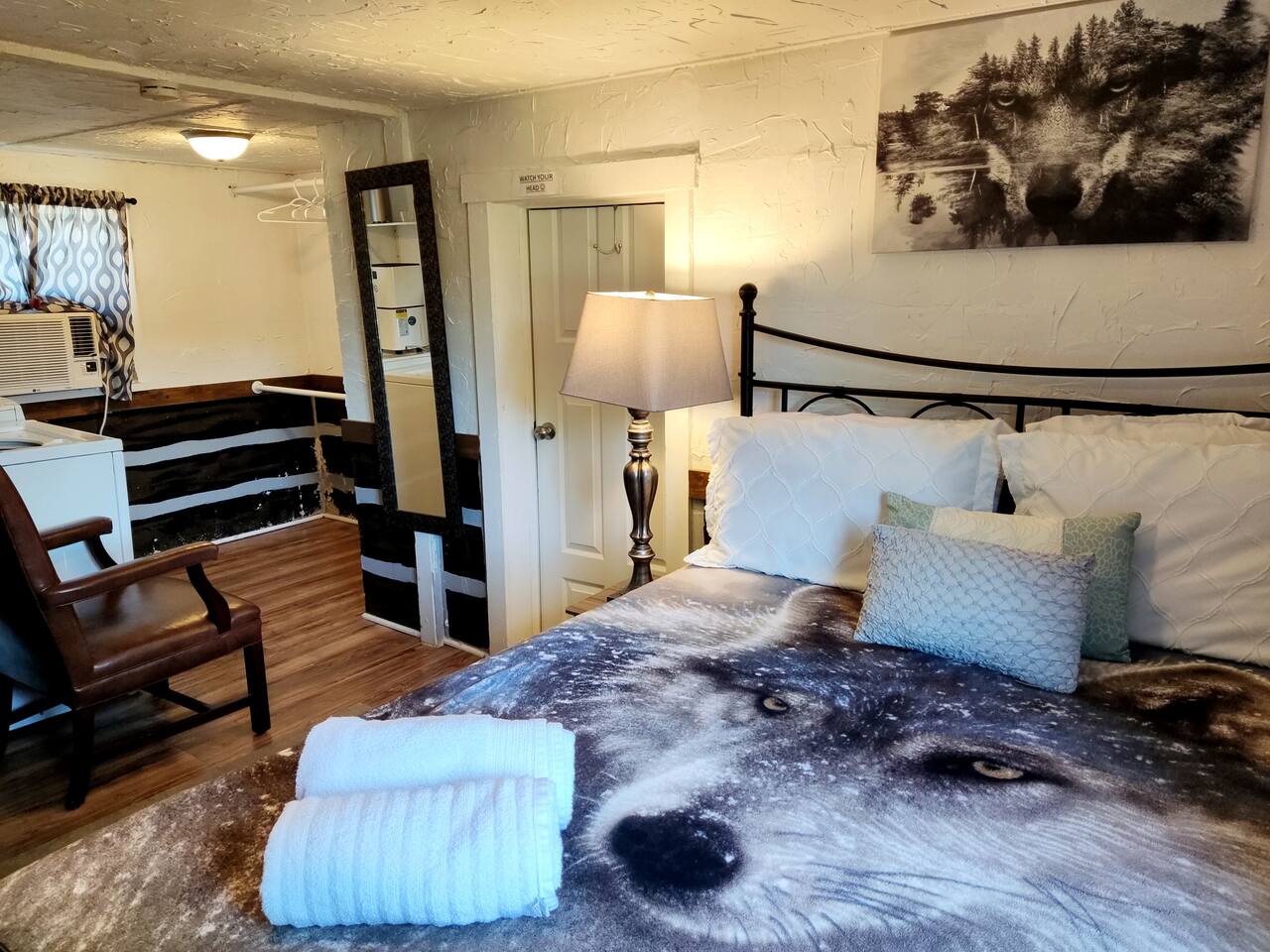 Please Note: Essential Pet Guidelines: Kindly take note of our pet policy to ensure a harmonious stay: Dogs under 20 pounds are warmly welcomed, accompanied by a pet fee of $100 per stay (not per night). For multiple dogs or pets exceeding 20 pounds, we kindly request prior communication before confirming your booking. Unapproved pets will result in a $250 fine. We respectfully request that pet waste is promptly collected and disposed of in the designated trash receptacles. To preserve the cleanliness of our accommodations, we kindly ask that pets refrain from occupying beds or couches. For the safety and comfort of all, pets must not be left unattended within the property. When venturing outdoors, please ensure your pet(s) remain on a leash. Please note, we regret to inform you that cats are not permitted. Towels: We provide one towel per guest if you are staying one to two nights. If you book longer than 2 nights we will provide 2 bath towels per guest. This is someone’s home, not a hotel so please be respectful of your neighbors. Respecting Tranquility: In consideration of all guests, we kindly request that a serene atmosphere is maintained after 11pm. Your cooperation in adhering to this quiet time is greatly appreciated. Your adherence to these guidelines ensures a harmonious and enjoyable experience for all guests. We extend our gratitude for your cooperation and understanding. Exercise caution when entering or exiting the cabin, as its age (over 100 years old) is reflected in its low ceiling height. I am. 6ft tall and I have to bow when entering the doorways. Other parts of the house I can walk and function as normal without any issues. There is a drainage treatment plant close proximity to this cabin. Please understand you might smell odor now and then. The odor is not from the cabin or not being clean, it is from the treatment plant. Which we do not have any control over. Thank you for understanding.