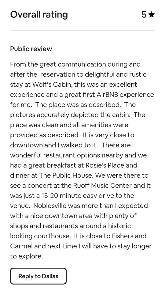Historic Charm: Step into a piece of history with our enchanting 100-year-old cabin. Prime Location: Nestled within walking distance of the charming Old Downtown Noblesville. Local Experience: Immerse yourself in the local scene with delightful restaurants, inviting bars, unique boutiques, and delectable ice cream shops just a stroll away. Outdoor Adventures: Explore the nearby White River walkway and Forest Park for outdoor adventures. Family-Friendly Attractions: Enjoy the seasonal Nickle Plate Express, Marry Go Round, Skate Park, Mini Golf, and more, all nearby. Entertainment Hub: The renowned Ruoff Music Center is a mere 5.6 miles away, offering entertainment for all. Comfortable Sleeping: Inside the cabin, find a Queen memory foam bed and two versatile futons for additional sleeping options. Fully Equipped Cabin for up to 4 guests: - Complete kitchen - Washer and dryer - Well-appointed full bath. - Queen bed, one futon bed, one sofa bed - Fast Wifi - Fully fenced yard - Smart TV (60) in the living room with Netflix - Smart TV (40) in the Bedroom with Netflix - Hot and Cold water - Multiple heaters during winter time - Gas Fireplace - Multiple window AC for summer to keep you cool - Community park with kids playground just down the street for you, kids and your dog to enjoy. - Private office with work station with desk and comfortable chair - BBQ and Swing on the patio - White-River access is down the street Entertainment: Kick back in the living room with a generous 60-inch smart TV featuring Netflix. Outdoor Relaxation: Step outside and find relaxation on the porch swing, while the gas grill invites you to savor a delightful BBQ experience. Pet-Friendly: Your furry companions are welcome with a pet-friendly policy allowing one Dog under 20 pounds each per booking. No dogs over 20 pounds without prior written approval from the host or if you want to bring a second dog you much let us know first. Early Check-In: For those seeking an early check-in, we offer the option to begin your retreat an hour ahead of the standard 4pm check-in time for a minor fee of $20. Historical Authenticity: Please Note: The cabin boasts low ceilings in keeping with its historical authenticity. Taller guests should exercise caution. Especially in all doorways. I am 6 ft tall and I have to bow entering and exiting in all doorways. I have no issues walking around in other parts of the cabin. Having said that You will love the charm and authenticity and uniqueness of this cabin and also the environment surrounding it. Short walk to the White River train, community garden across the street and a playground and park down the street and not to mention historical downtown Noblesville is about a mile away. Unique Getaway: Seize the opportunity to make history a part of your present with a stay at our captivating cabin. Book Now: Create cherished memories that bridge the past and the present, offering a truly unique and immersive getaway experience. Book now to secure your stay!